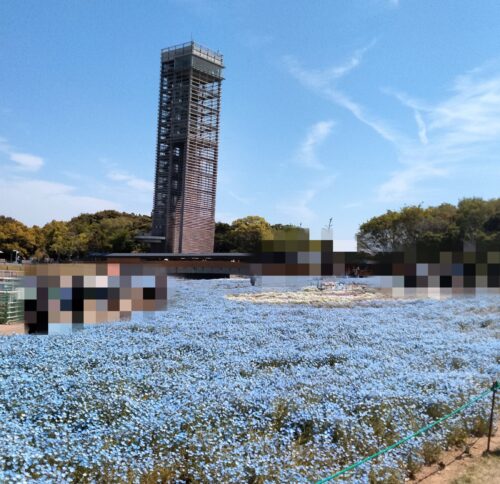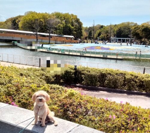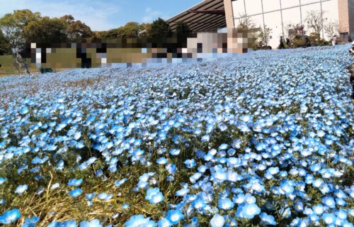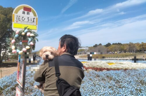 今日は、カンバン犬の散歩で浜名湖ガーデンパークに出かけました。ネモフィラがちょうど見頃で、多くの人が来ていました。