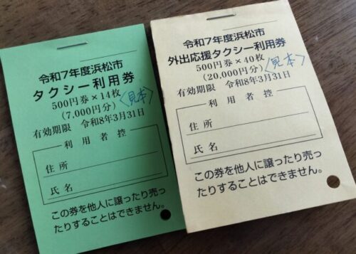 七福では、浜松市タクシー利用券をお支払いにお使いいただけます。令和7年度のタクシー券の有効期限は3月31日までです。